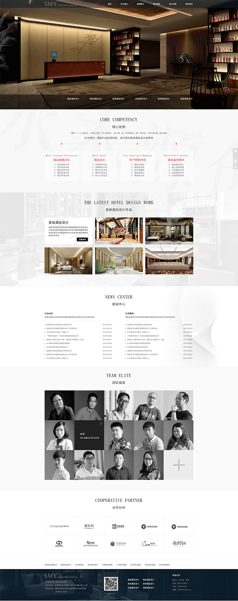 案例列表下面大面積留白,后來(lái)為了承上啟下,采用了低透明度黑白裝修圖片作為大背景的設(shè)計(jì)方式。團(tuán)隊(duì)展示方面采用黑白交互方式,配以精致的擴(kuò)展箭頭,點(diǎn)擊進(jìn)入內(nèi)頁(yè)詳情頁(yè)面。新聞中心模塊,之前采用傳統(tǒng)的圖文配合方式,后來(lái)發(fā)現(xiàn)圖片方塊太多,結(jié)合上下板塊,使用純文字較合適,至于細(xì)節(jié)方面,慢慢斟酌,最后采用了類(lèi)似于保時(shí)捷網(wǎng)站新聞列表的展示方式。綜上,此網(wǎng)站在細(xì)節(jié)方面花了較多精力,展示方式與版式方面中規(guī)中矩。至于內(nèi)頁(yè)方面,有七個(gè)頁(yè)面需要排版設(shè)計(jì),其實(shí)大部分企業(yè)并沒(méi)有多少能夠宣傳的資料,企業(yè)簡(jiǎn)介也沒(méi)有多少文字,更不用說(shuō)榮譽(yù)資質(zhì)、發(fā)展歷程、企業(yè)文化之類(lèi)的。少量的簡(jiǎn)介文字,簡(jiǎn)單的采用類(lèi)似word文檔排版方式,由于內(nèi)容太少,可能存在形式上的缺陷,降低了信任感。這時(shí)候就需要設(shè)計(jì)師對(duì)少量?jī)?nèi)容進(jìn)行排版設(shè)計(jì),配以圖文,才會(huì)讓內(nèi)容顯得飽滿(mǎn),才會(huì)有可信任的客戶(hù)體驗(yàn)。