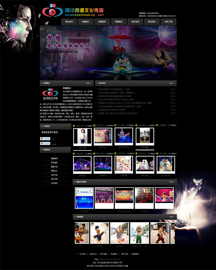 舞團十余年的演出活動集聚了大量的客戶和演藝資源,為更好地為廣大客戶提供更專業(yè)的演藝服務(wù),2013年,公司領(lǐng)導(dǎo)人開始籌建四川西源文化傳播有限公司,以期實現(xiàn)從純粹的商演團隊到綜合性演藝服務(wù)公司的轉(zhuǎn)變。2014年2月,公司正式注冊成立。目前已在成都各演藝平臺全面宣傳,并吸引了大量的演藝資源加盟。